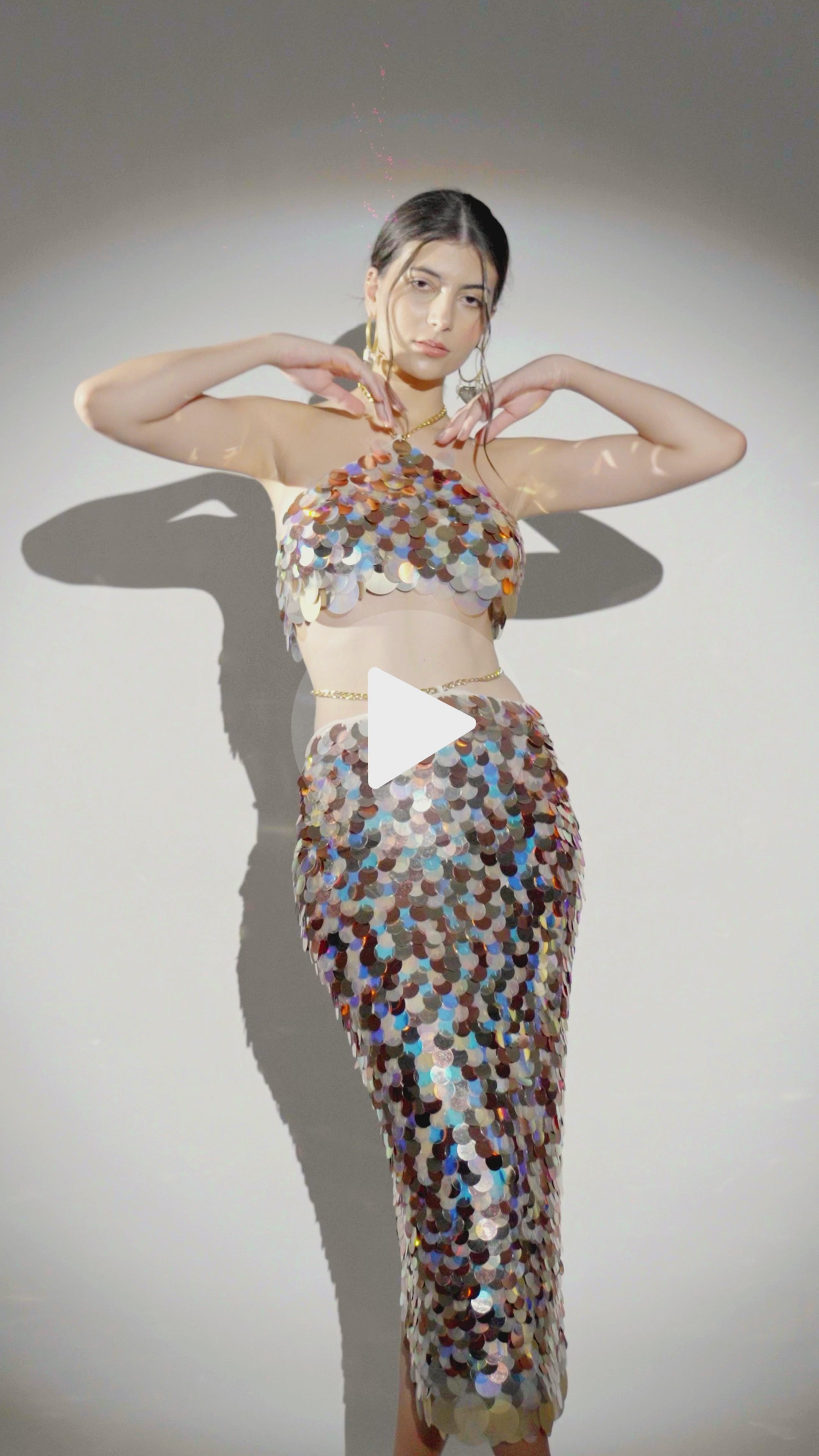 Make a striking statement in our Isla Top, designed to steal the spotlight at sun-drenched beach parties, glamorous poolside gatherings, or chic resort weddings. The top exudes coastal elegance with a modern edge, featuring a shimmering metallic halter neck chain detail that adds a touch of glamour to any occasion. Crafted to perfection, it pairs effortlessly with our ankle-length skirt adorned with seaside-inspired embellishments.